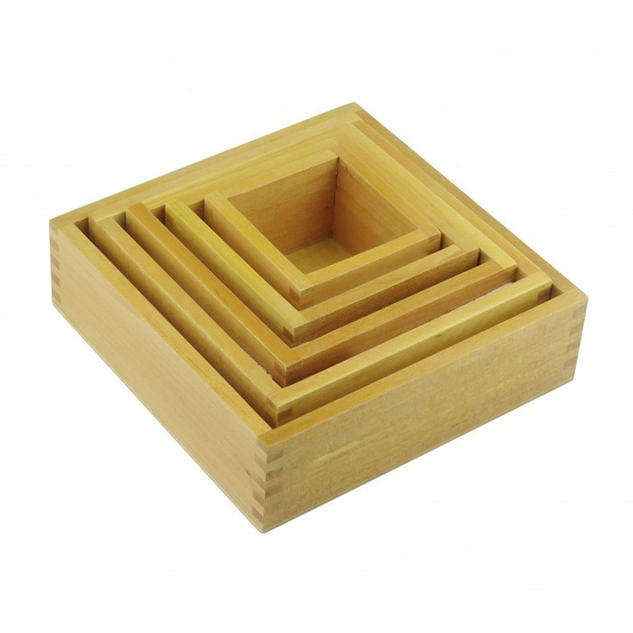 Игра с коробочками аналогична складыванию матрёшки, но конструкция более очевидна для детей младшего возраста, так как коробочки не имеют крышек.