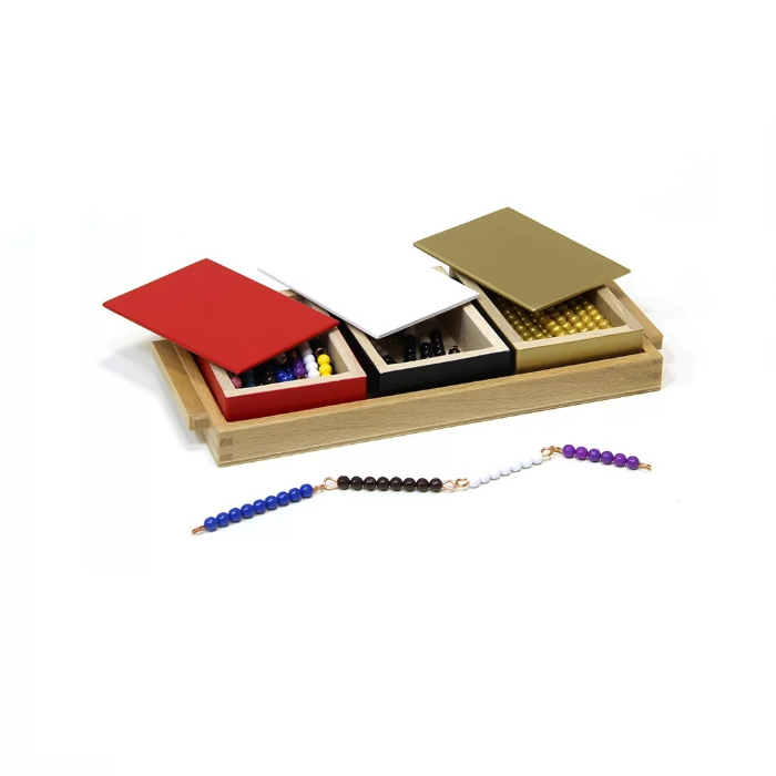 Упражнения в счете. Заменяя цветные бусины на «золотые» и черно-белые, в игровой форме ребёнок учится складывать однозначные числа, подготавливаясь к запоминанию  таблицы сложения. Особый интерес в этой игре вызывает момент перехода через 10.