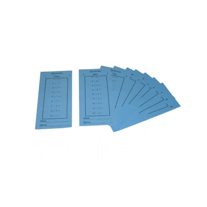 Материал представляет собой бумажные карточки синего цвета с примерами на умножение, по 20 карточек на каждый пример.