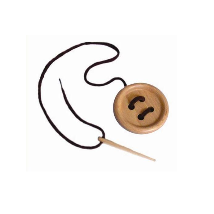 Упражнение предназначено для приобретения навыка пришивания пуговиц к одежде. Использование деревянной пуговицы и безопасной иголки позволяет отработать последовательность простых операций по пришиванию пуговицы. Упражнение является подготовительным к работе с металлической иголкой.