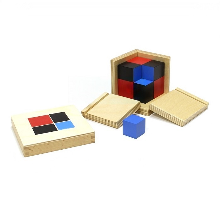 Ребенок собирает биномиальный куб, сравнивая грани призм и кубиков, прикладывая их один к другому: красный – к красному, синий - к синему, черный – к черному. Чтобы получился исходный куб, ребенку приходится подбирать эти призмы и кубики еще и по размеру. Он вынужден тщательно анализировать собственные действия, что наилучшим образом способствует развитию детского мышления. Конкретное представление алгебраической формулы (a + b) в квадрате.