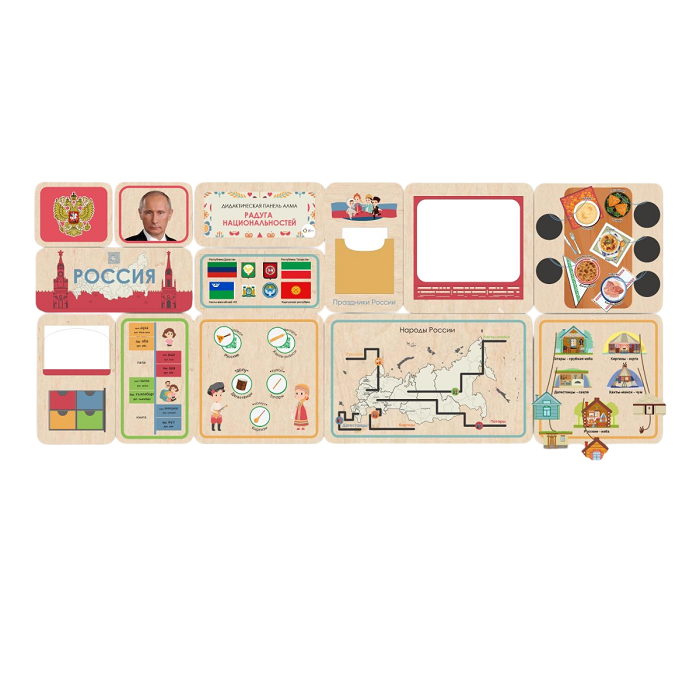 Приобщайте детей к удивительному миру национального многообразия России с помощью наших дидактических панелей! Ведь, чтобы вырастить граждан, уважительно и без дискриминации относящимся к людям другой национальности, нужно просвещать юное поколение с самого раннего возраста.