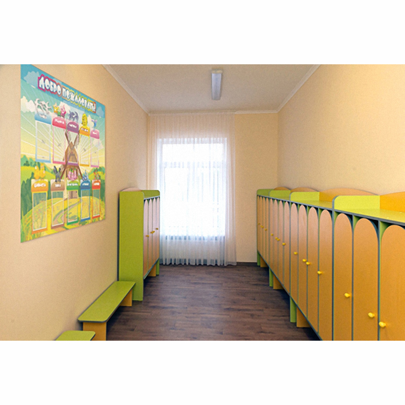 Информационные карманы расположены по центру в два ряда. Каждый карман имеет свой заголовок, который отражает название группы. Группы различаются по цвету и имеют индивидуальную картинку. В карманах предполагается размещение списков детей по группам с указаниями их воспитателей. Для изготовления стенда используются только качественные материалы. Его легко монтировать на стену.