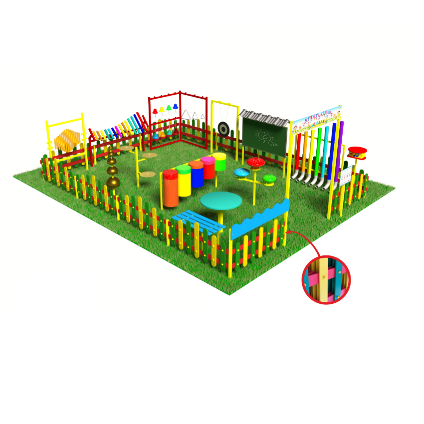 Комплекс предназначен для установки на территории детского сада, прост в использовании и подходит для занятий круглый год.