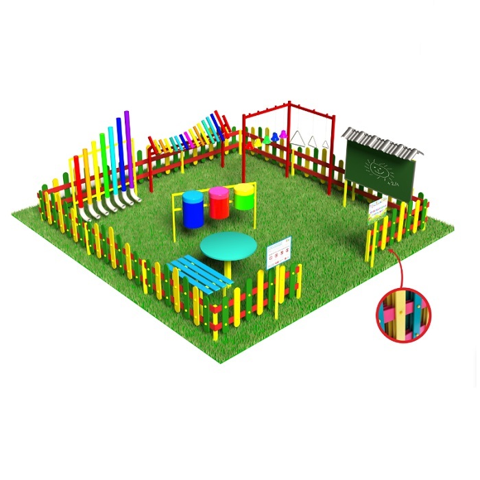 Комплекс предназначен для установки на территории детского сада, прост в использовании и подходит для занятий круглый год.