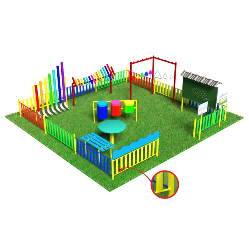 Комплекс предназначен для установки на территории детского сада, прост в использовании и подходит для занятий круглый год.