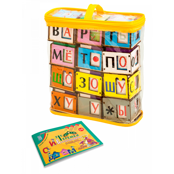 Набор модульных кубиков знакомит ребёнка с графическим образом букв (гласными, согласными, ь и ъ), звуками им соответствующими; возможность моделирования слогов и слов готовит ребёнка к обучению грамоте, начальным навыкам чтения.