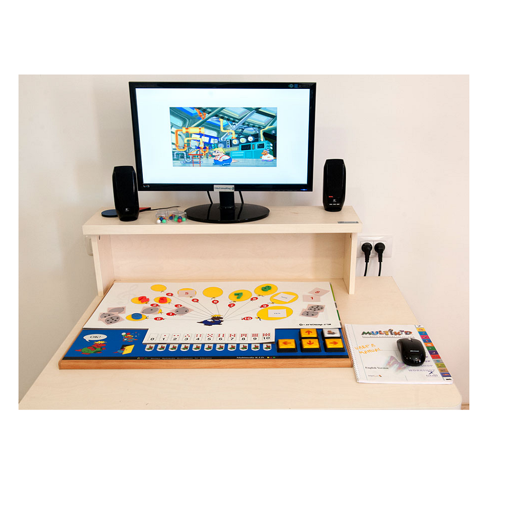 Все компоненты системы являются частью инновационного подхода к обучению, когнитивному и технологическому развитию детей. Multikid - это интеграция программного обеспечения с интерактивным рабочим столом, специальными ковриками для заданий и дидактическими материалами.