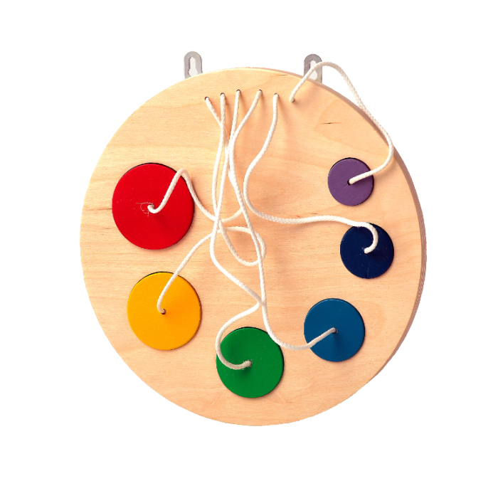 Яркая игрушка из натурального дерева предназначена для развития у детей мелкой моторики. Также может быть использована для упражнений на изучение цветов.