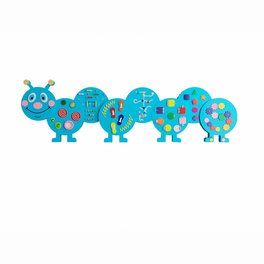 Бизиборд «Веселая гусеничка №1» не только украсит любую детскую комнату, развивает умственные качества ребенка, но и имеет приятный голубой цвет, который в своем роде бережно влияет на нервную систему, помогая ребенку успокоиться и сконцентрироваться на занятии.