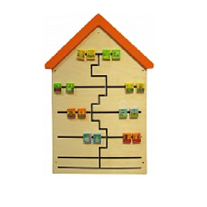 Изделие представляет собой панель в виде домика с лабиринтом, по которому нужно передвигать фигурки.