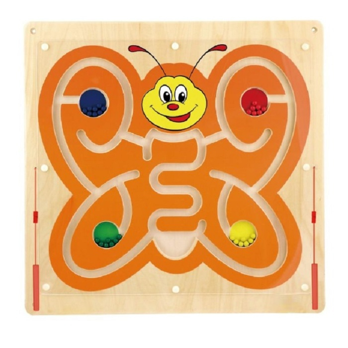 Панель выполнена в виде бабочки и представляет собой магнитный лабиринт с подвижными элементами в виде шариков 4 разных цветов (синий, красный, зеленый, желтый). Количество шариков каждого цвета - не менее 7 штук.