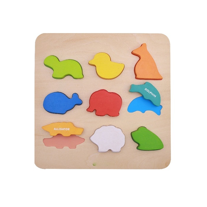 Учебная панель знакомит детей с цветом, видами животных и развивает навыки сортировки (по цвету, форме). 9 видов животных и 9 соответствующих по форме отверстий.