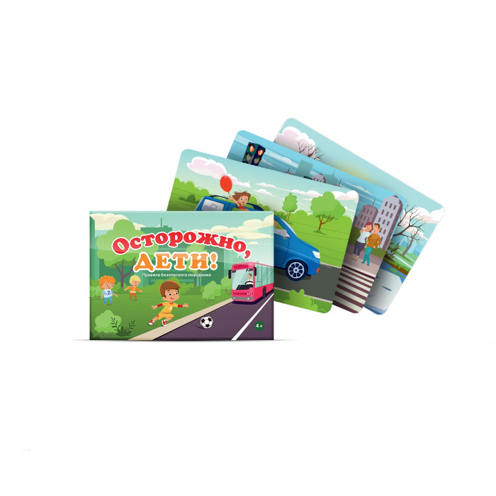 Осторожно дети — набор сюжетных открыток с потенциально опасными ситуациями в жизни детей: выбегание на проезжую часть, «игра в доктора» с настоящими таблетками, игры на строительной площадке и другими. Открытки подходят для занятий с детьми от 4-х лет. Сюжеты реалистичны и дополнены деталями, которые помогут объяснить, почему ситуация опасна. Например: по пешеходному переходу можно переходить улицу. Но когда на светофоре горит красный свет — нельзя, даже если друг упорно тянет тебя за руку.