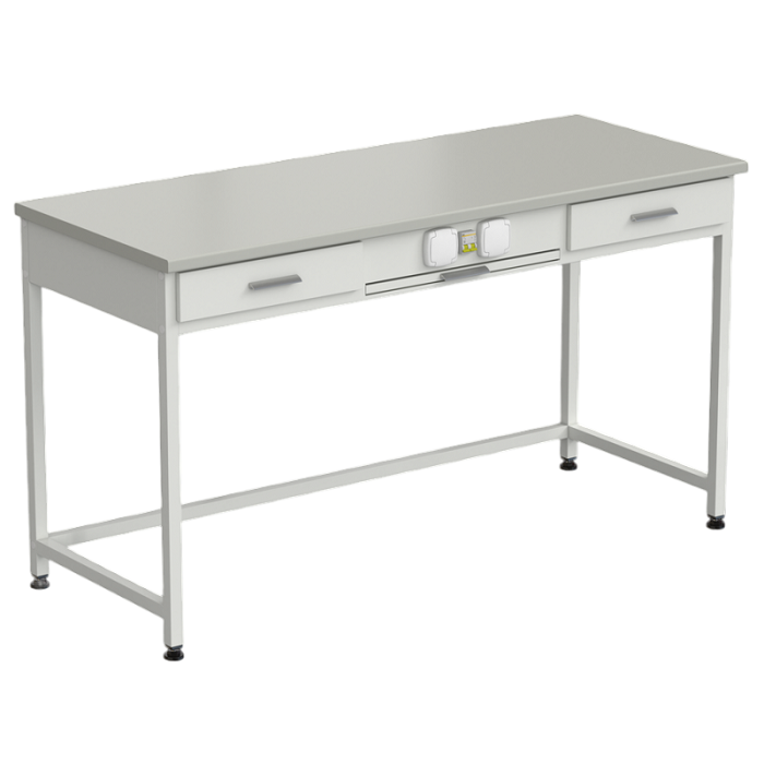 сети переменного тока. Стол укомплектован: выдвижным столиком, двумя выдвижными ящиками, двумя розетками для подключения