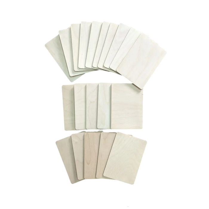 Деревянные заготовки А6, А5, А4, А3 формата – набор досок для творчества любого вида. Заготовки для творчества сделаны из качественной березовой фанеры 3 мм, дополнительно отшлифованы и имеют закругленные края. Набор досок не имеет острых углов, безопасны для использования в работе.