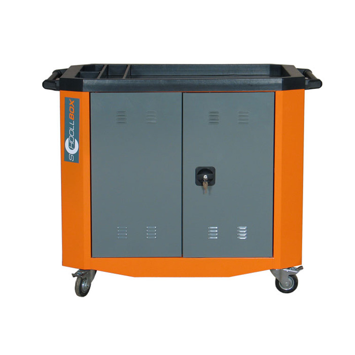 Тележка состоит из металлического корпуса . Внутри корпуса располагаются две полки с сетчатыми перегородками для размещения ноутбуков (максимум по 15 ноутбуков на каждой полке). Внутреннее отделение закрывается двумя дверьми с ригельным замком. Сетчатые перегородки съемные, позволяющие оптимально организовать внутреннее пространство, при количестве ноутбуков менее 30 штук.