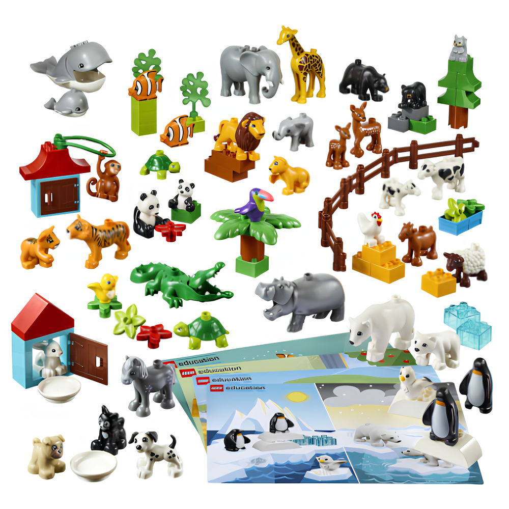 Набор «Животные» входит в Систему дошкольного образования LEGO Education и включает в себя 91 деталь LEGO DUPLO, в т.ч. 40 фигурок диких животных, сельскохозяйственных животных и домашних питомцев.