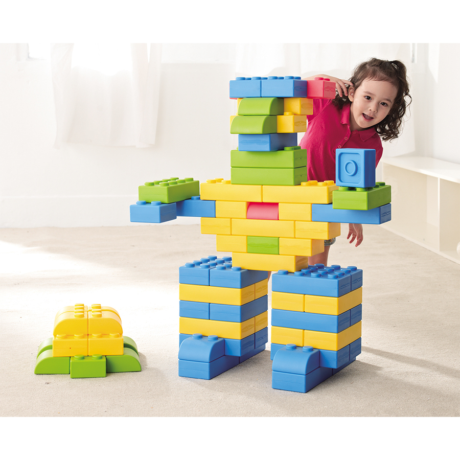 Детали окрашены в 4 основных цвета (желтый, зеленый, красный и синий). Это позволяет даже детей самого раннего возраста знакомить с цветами. Универсальность конструктора состоит в том, что дети младшего возраста могут легко строить простые конструкции, а дети старшего возраста (даже школьники) могут создавать объемные сооружения и использовать их в играх (гаражи для машин любых размеров, элементы мебели, дома для кукол и даже для самих детей.