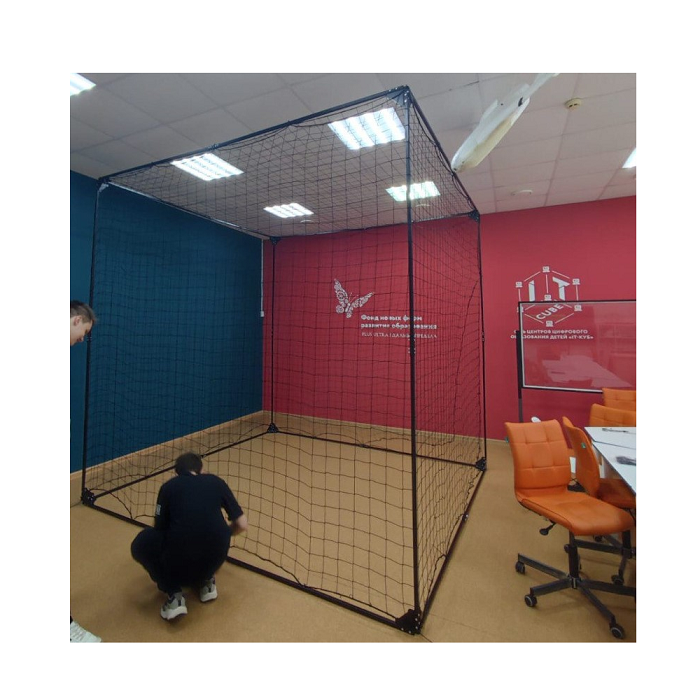 Сетчатое ограждение зоны полётов 3Х3Х3м, сборная конструкция их нержавеющих труб, затянутая по периметру и в верхней части сеткой. Малая полетная зона для тестовых полетов в защищенном пространстве. Каркасно-сетчатый куб для реализации программ тренировок по обучению полетам, подготовке к соревнованиям и проведению соревнований.