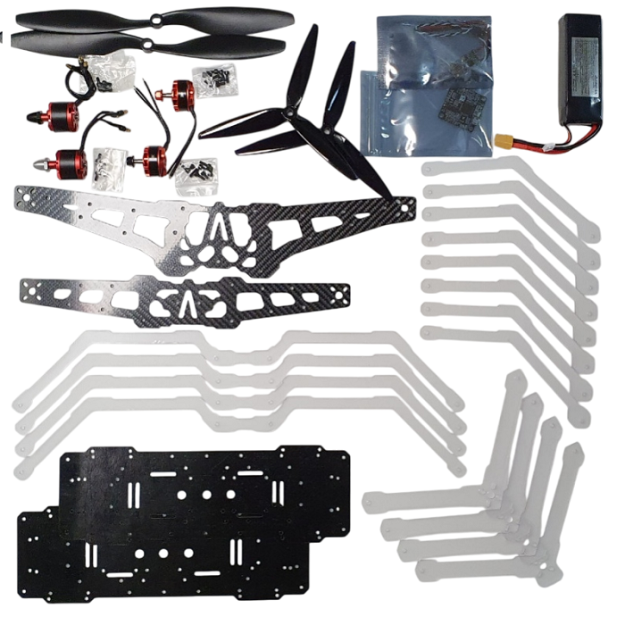 Ремкомплект состоит из базовой платы управления, комплекта воздушных винтов, комплекта деталей рамы, комплект защиты воздушных винтов, моторов.