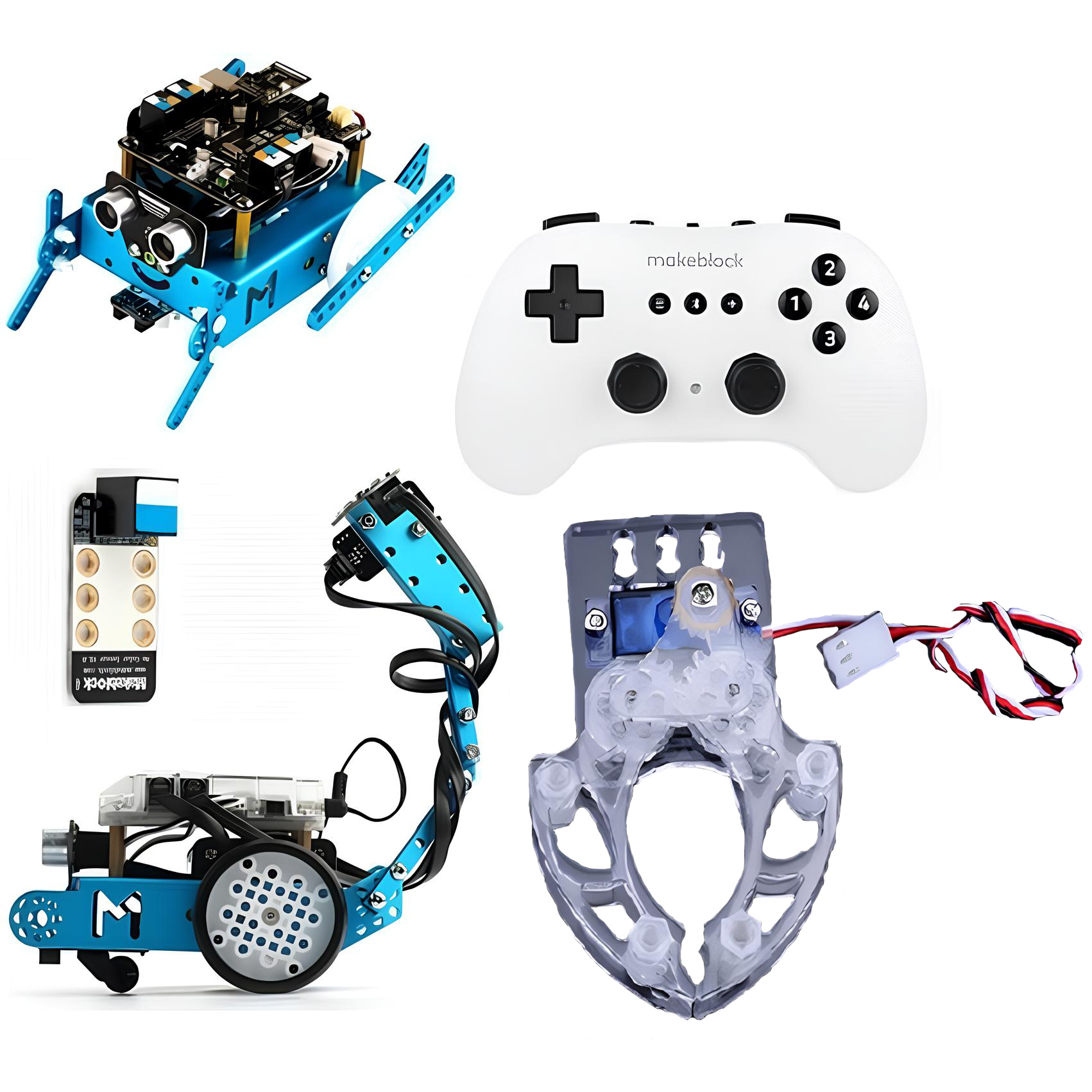 Ресурсный набор к «ОР. Базовый робототехнический набор Makeblock "Основы робототехники"», расширяющий возможности базового набора, для создания дополнительных конфигураций роботов. Содержит элементы для соревновательной и исследовательской деятельности, большое количество конструктивных и электронных модулей, позволяющих изучить основы работы различных датчиков, научиться программировать электронные и робототехнические системы. Наличие Bluetooth пульта управления рекомендуется для робототехнических соревнований.