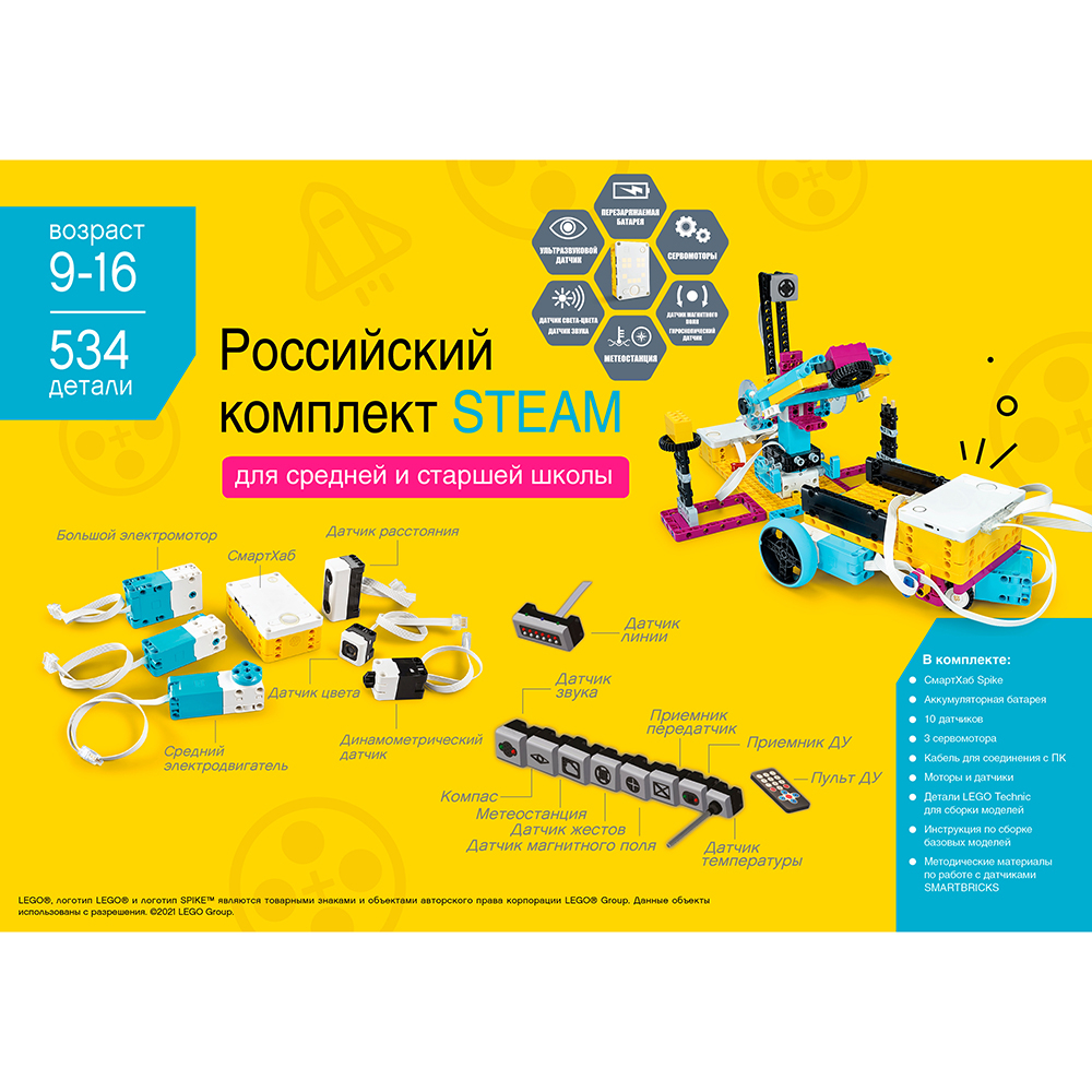 Российский комплект STEAM – образовательное решение, сочетающее в себе лидирующую мировую робототехническую платформу и комплект датчиков, разработанных и произведенных в России.