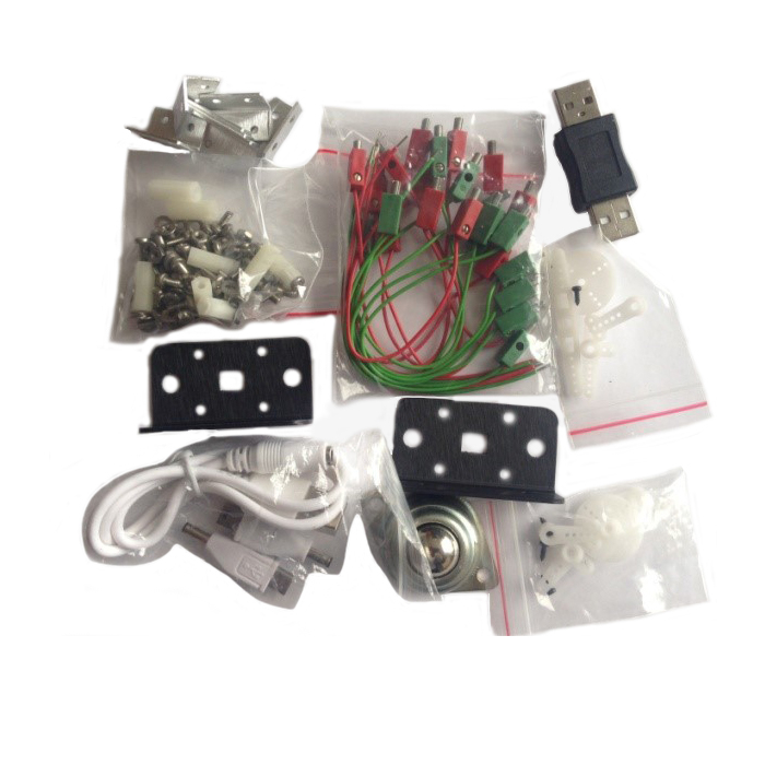 Комплект соединительных проводов, кронштейнов, соединительных элементов для крепления и подключения исполнительных механизмов, датчиков, входящих в комплект, и трехопорное шасси.