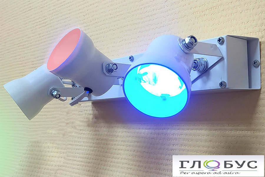 Интерактивная система Луч состоит из трех проекторов красного, синего и зеленого цвета свечения. Каждый проектор закреплен к общему корпусу на гибких стойках.