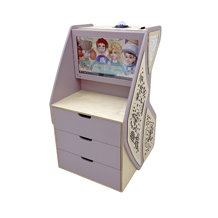 Эргономика «Иллюминара» продумана до мелочей: экран сенсорной панели располагается на удобной высоте для ребёнка, под сенсорной панелью три выдвижных ящика для игрушек и методического материала, на выступающей столешнице ящика можно рисовать, собирать конструктор, заниматься с дополнительным оборудованием, а можно облокотиться на столешницу, выполняя увлекательные задания на экране.