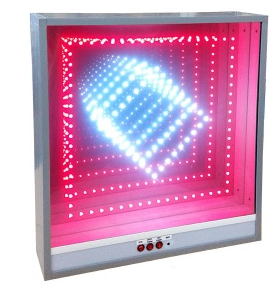 Имитация двух бесконечных тунелей на миниэлектролампах. Внешний квадратный тунель управляется с выносного пульта (тактильный режим). Внутренний круглый тунель управляется от внешних звуков, издаваемых человеком: хлопок в ладоши, топание ногой, крик и т.п. Панель реагирует на эти звуки. Управление на лицевой панели кнопками, с интерактивного выносного пульта, или от внешних звуков, воспринимаемых встроенным микрофоном (акустический режим).