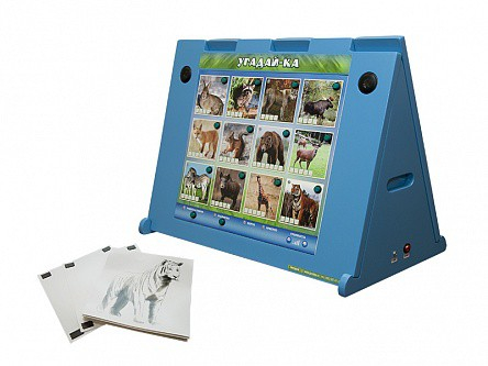 В комплекте со стендом поставляются карточки с контурным изображением животных, что позволяет разнообразить игровую форму обучения. Дети, поделенные на две команды, выбирают изображение, которое, по их мнению, соответствует животному, чей контур прорисован на карточке, показанной воспитателем. Выбор осуществляется путем нажатия на светоиндикационную кнопку. Выигрывает команда, давшая первой наибольшее количество верных ответов.