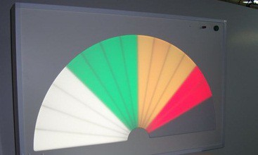 Принцип работы панели основан на изменении изображения в зависимости от уровня громкости звуков, издаваемых вокруг. Чем выше уровень звука, тем большее количество ячеек загорается одновременно.