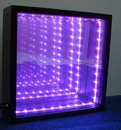 При включении зеркальное панно превращается в туннель из огоньков, уходящих в бесконечность.