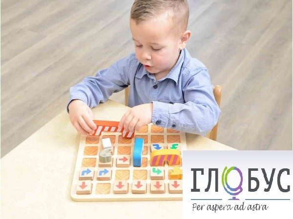 Панель-игра помогает ребенку выучить язык кодирования, цвета и различные формы.
