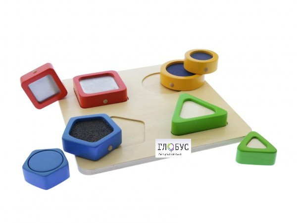На лицевой части панели представлены 4 пары штабелируемых блоков с различными текстурами. Каждая пара имеет свою форму и цвет. Панель предназначена для развития тактильных и моторных навыков, логического мышления, а также для знакомства с формой и цветом.