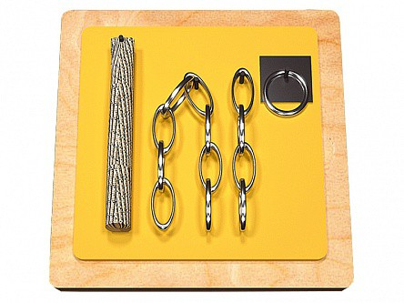 Представляет собой панно, изготовленное из влагостойкой фанеры. В центре панно расположены 4 предмета, которые представлены в виде: каната, цепи одинарной металлической, цепи парной металлической и кольца, выполненного также из металла.