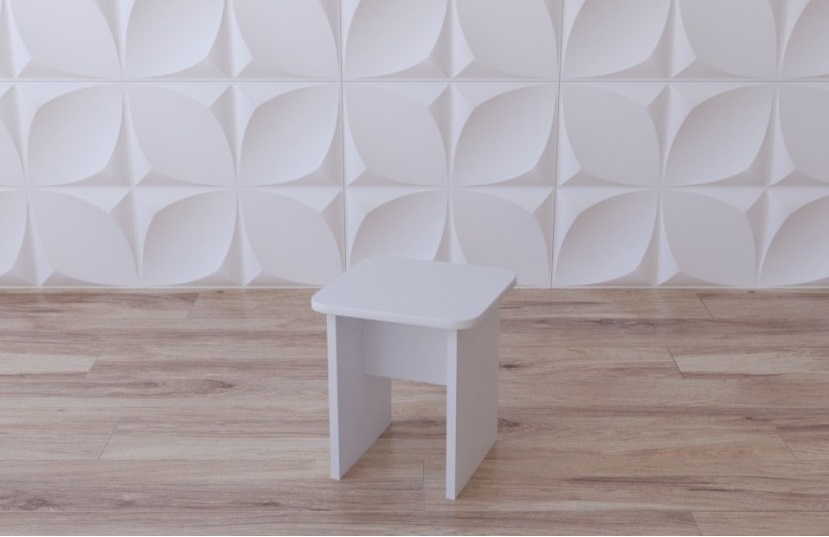 Имеет квадратное сиденье и две опорные боковые ножки, очень устойчивый и одновременно с этим вполне мобильный, окрашен в снежно-белый цве